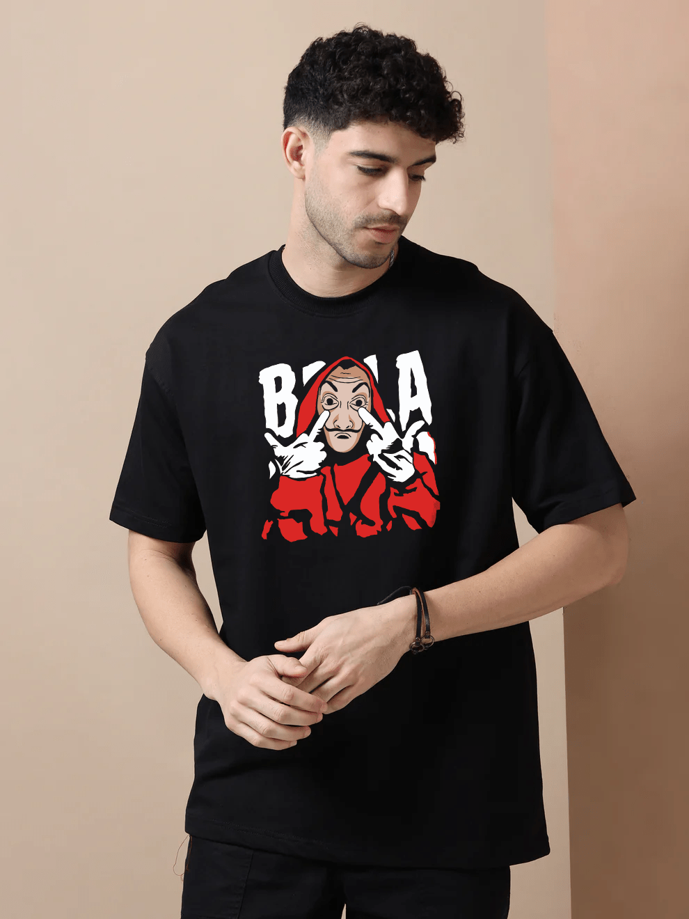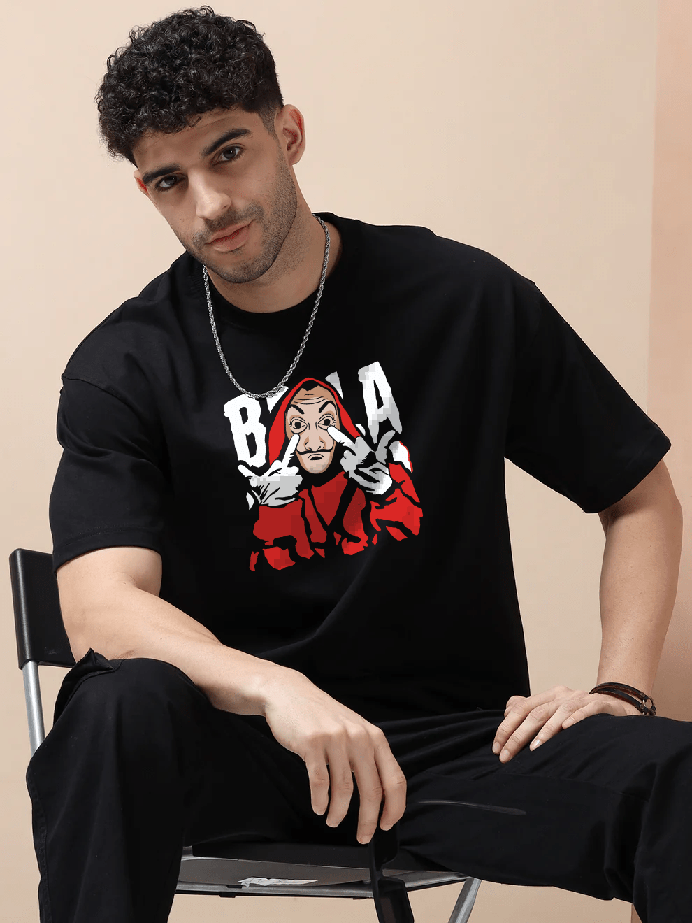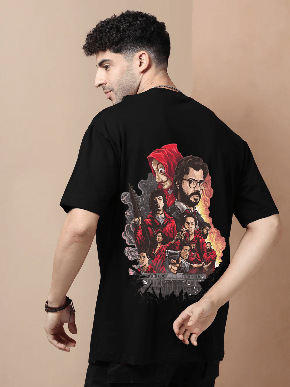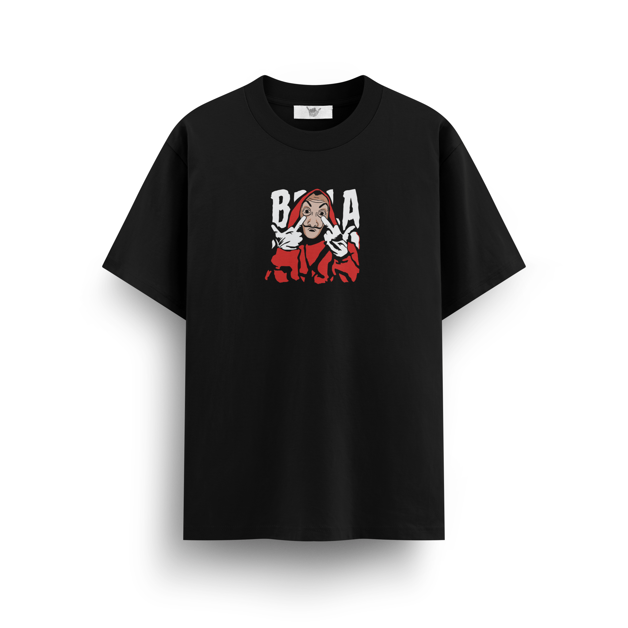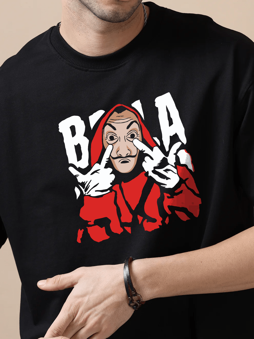 Unleash your rebellious spirit with this oversized Money Heist tee! Featuring an iconic series design on the back and bold "Bella Ciao" text on the front, this tee is perfect for fans who live by the heist mentality.