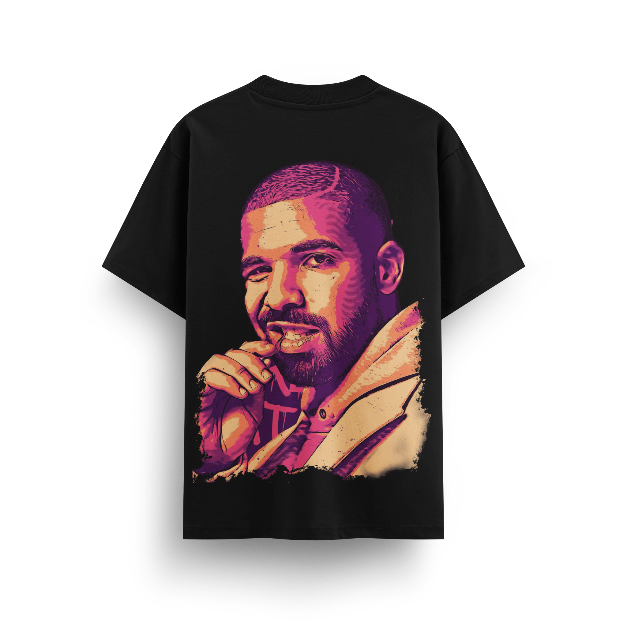 Level up your streetwear with this oversized tee featuring bold DRAKE text on the front, The back showcases a standout photo of the iconic artist, blending fan pride with effortless style.