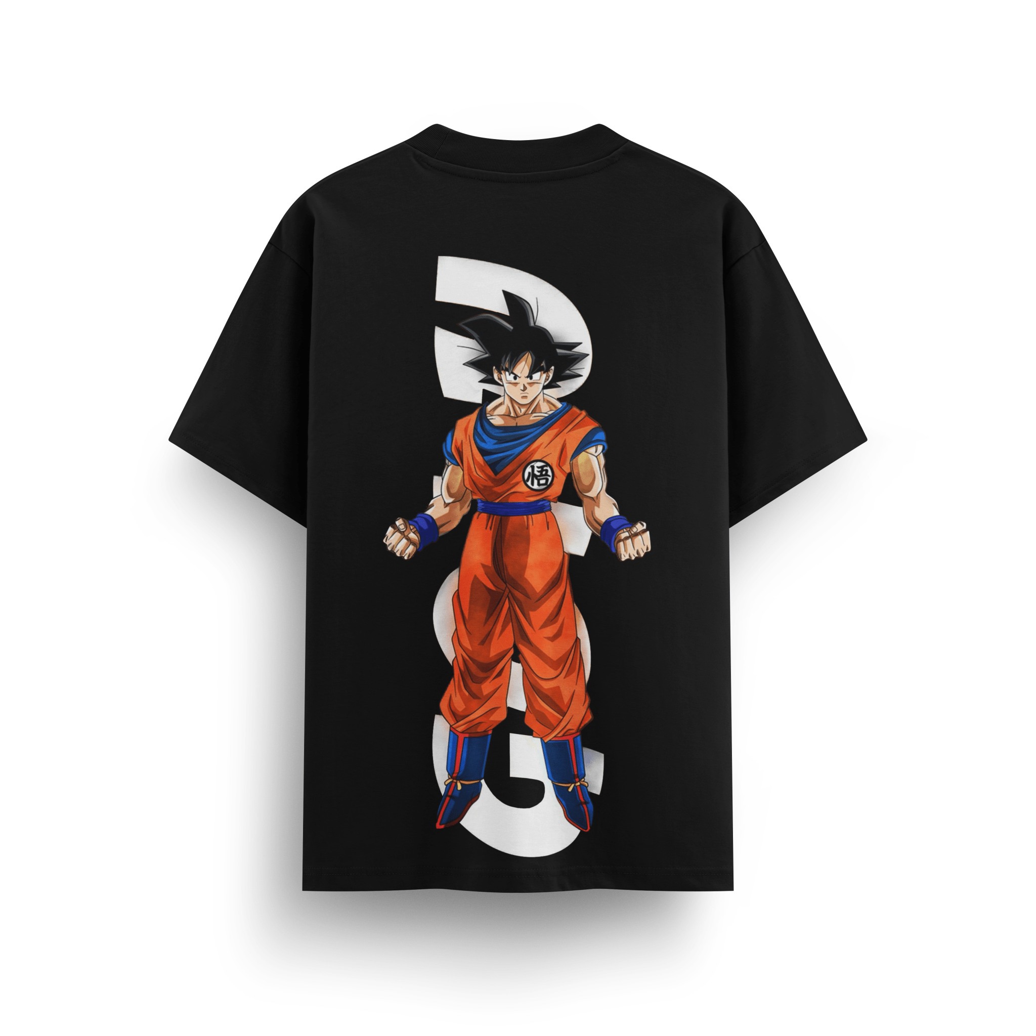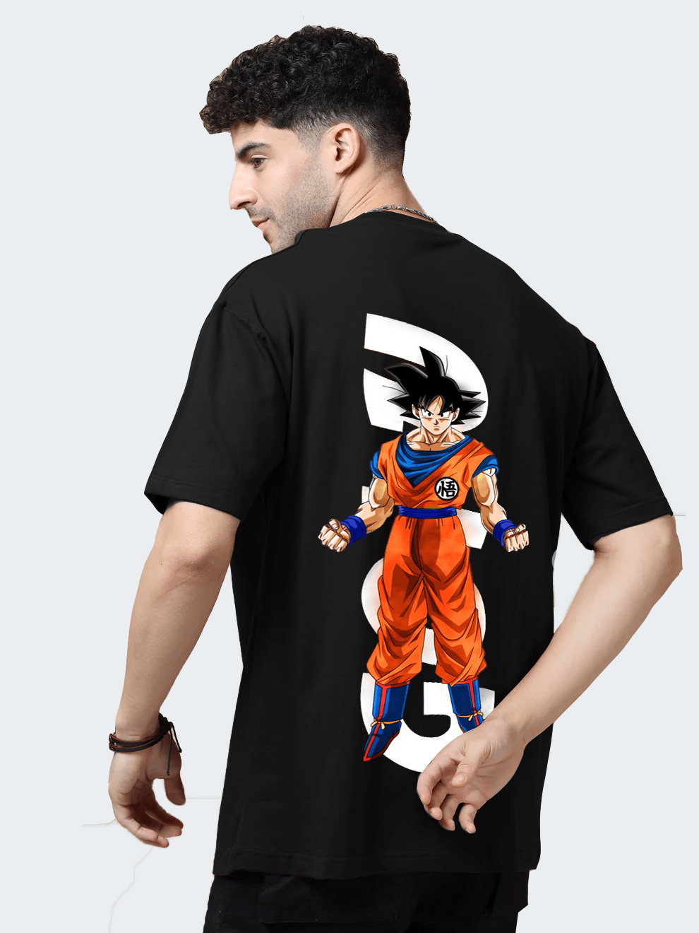 Power up your look with this oversized tee featuring a classic Dragon Ball design on the front. The back brings the energy with a dynamic photo of Goku, making it the perfect pick for anime lovers and streetwear fans alike.