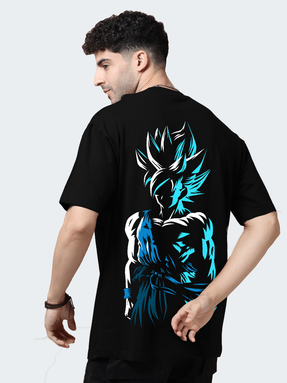 Fuel your spirit with this oversized tee featuring a bold Dragon Ball Z text design on the front. The back brings the energy with a powerful photo of Goku and dynamic elements, perfect for true anime and DBZ fans.