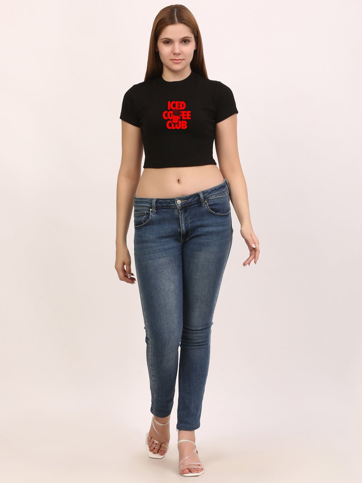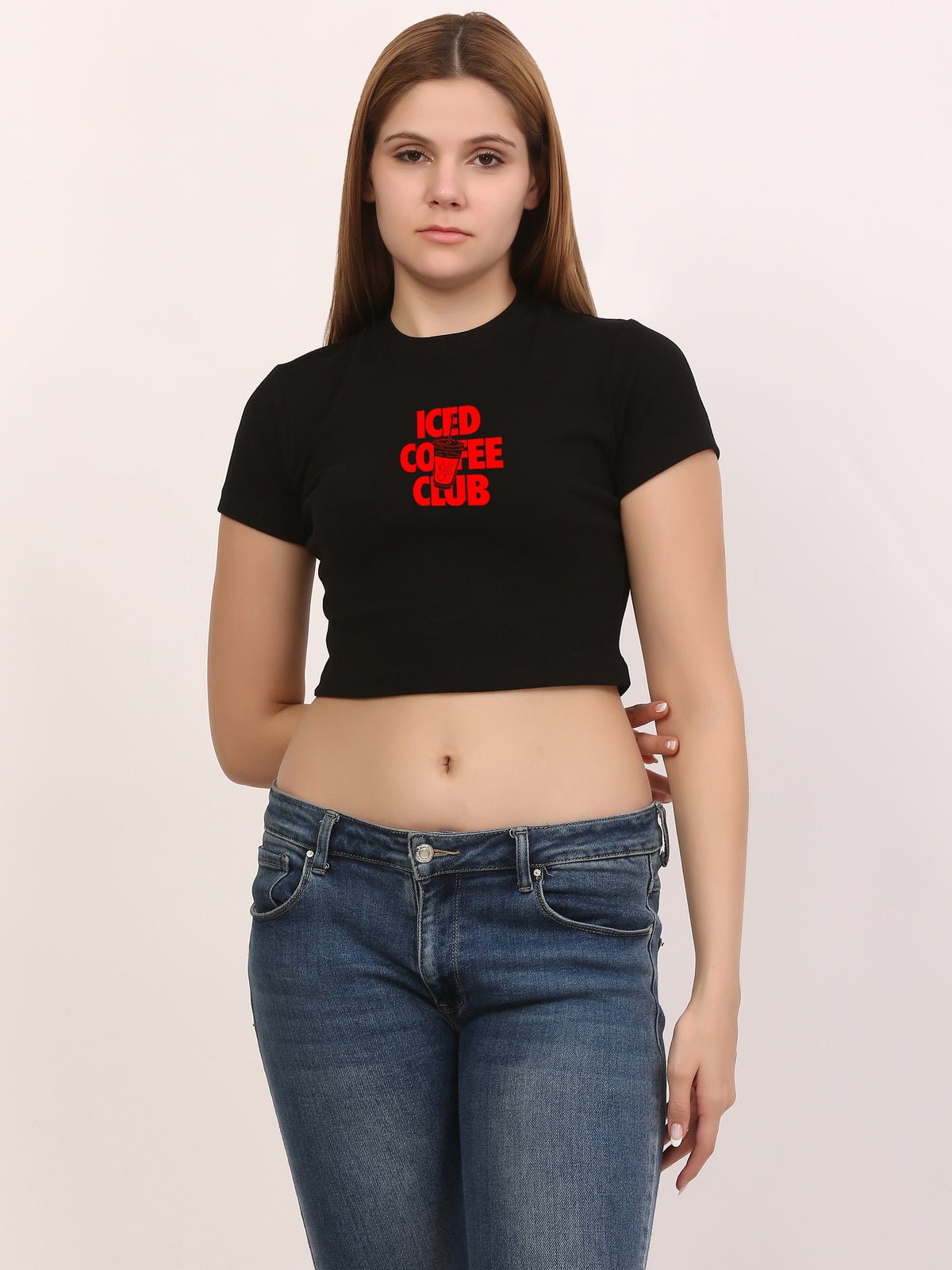 Stay cool and stylish with this baby tee featuring a fun "Iced Coffee Club" design on the front. Perfect for coffee lovers who live for that chilled brew vibe.