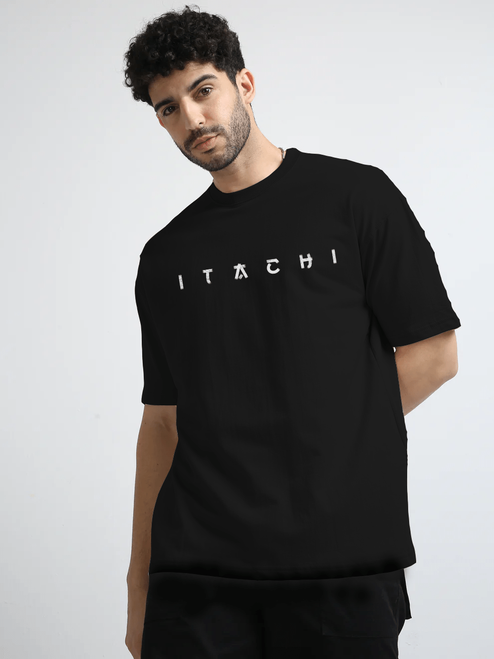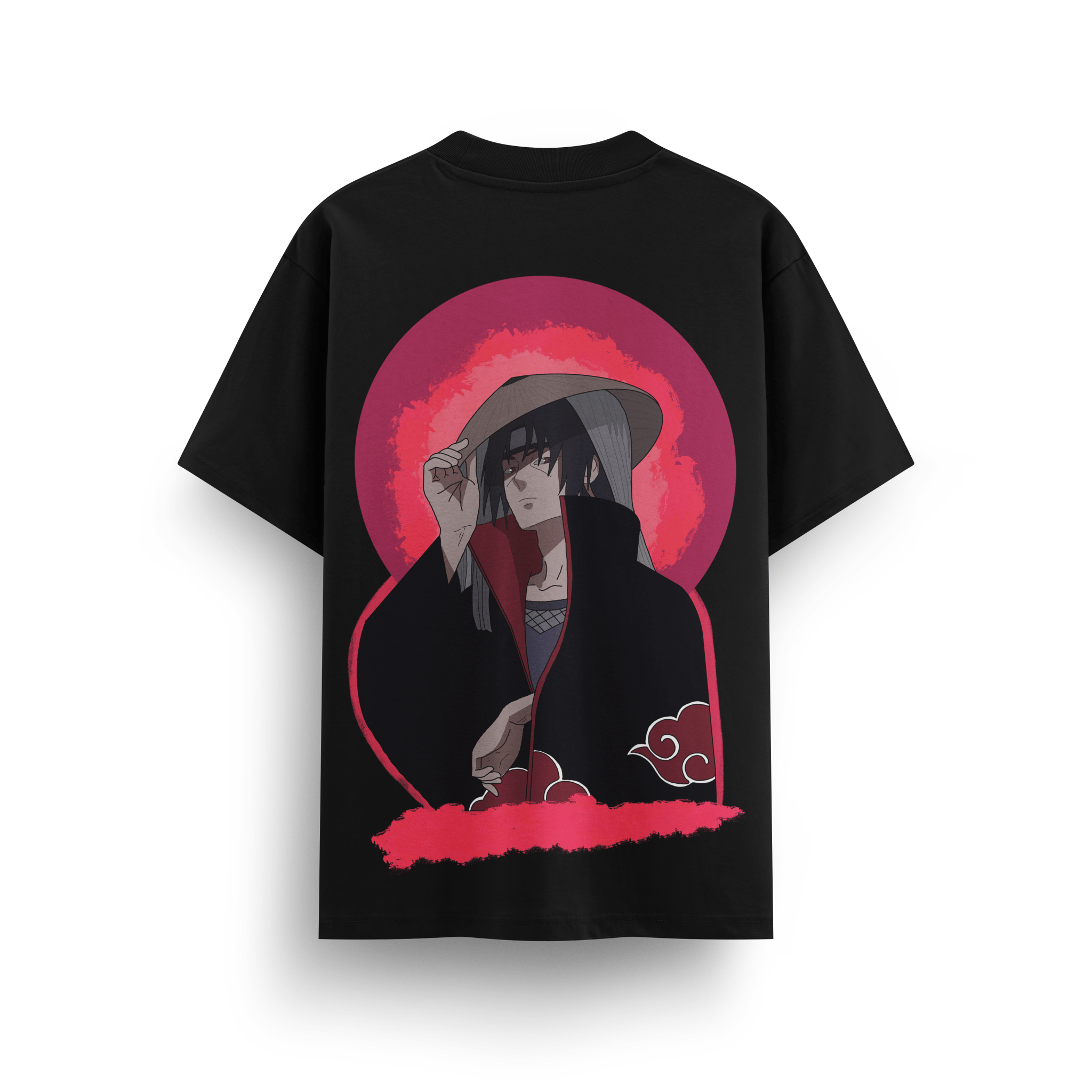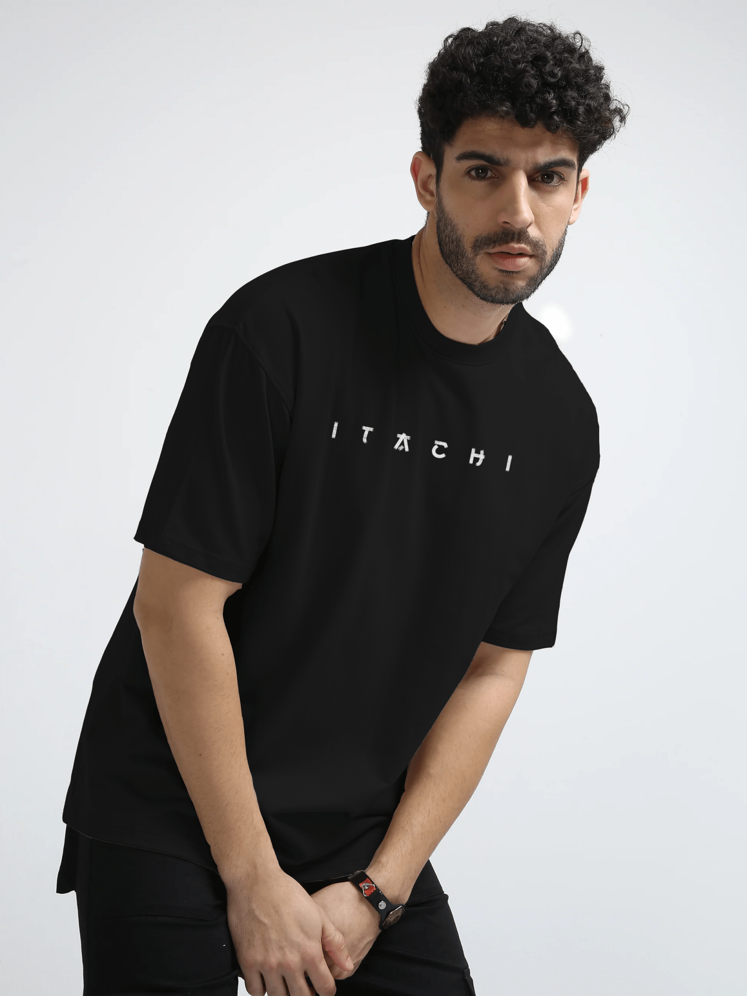 Show off your love for Naruto with this oversized tee featuring a bold Itachi text design on the front The back showcases a powerful photo of Uchiha Itachi along with iconic text making it a must-have for anime fans