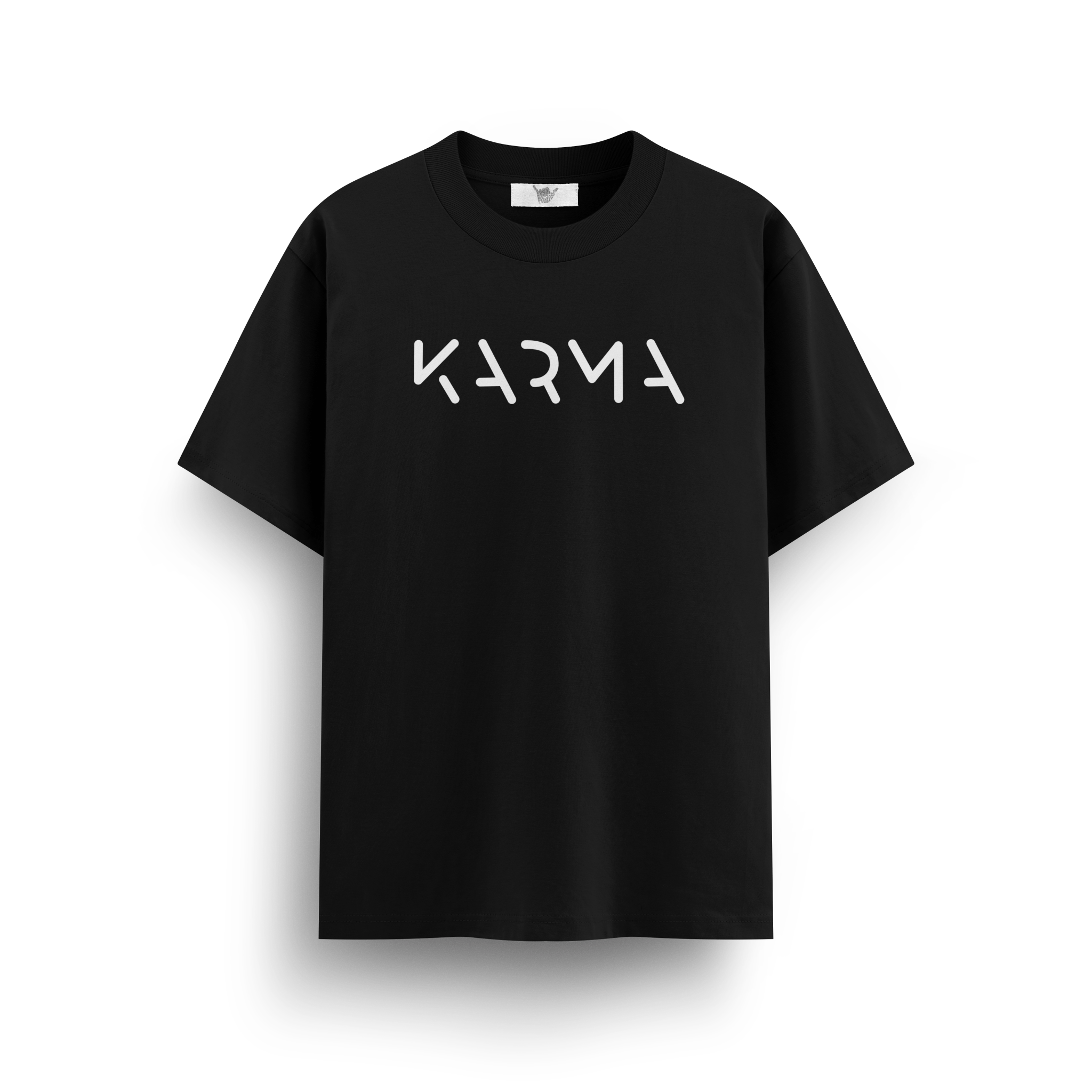 Own your vibe with this oversized tee featuring a bold Karma text design on the front. The back delivers a powerful message with What Goes Around Comes Around and stylish text, perfect for those who believe in energy and attitude.