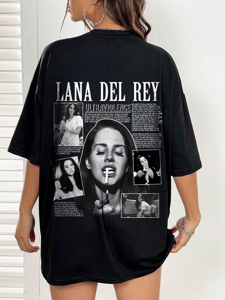 Channel vintage glamour with this oversized Lana Del Rey tee, featuring a bold Ultraviolence design on the back and Lana Del Rey text styled in a lip-shaped design on the front. A must-have for true fans and streetwear lovers!