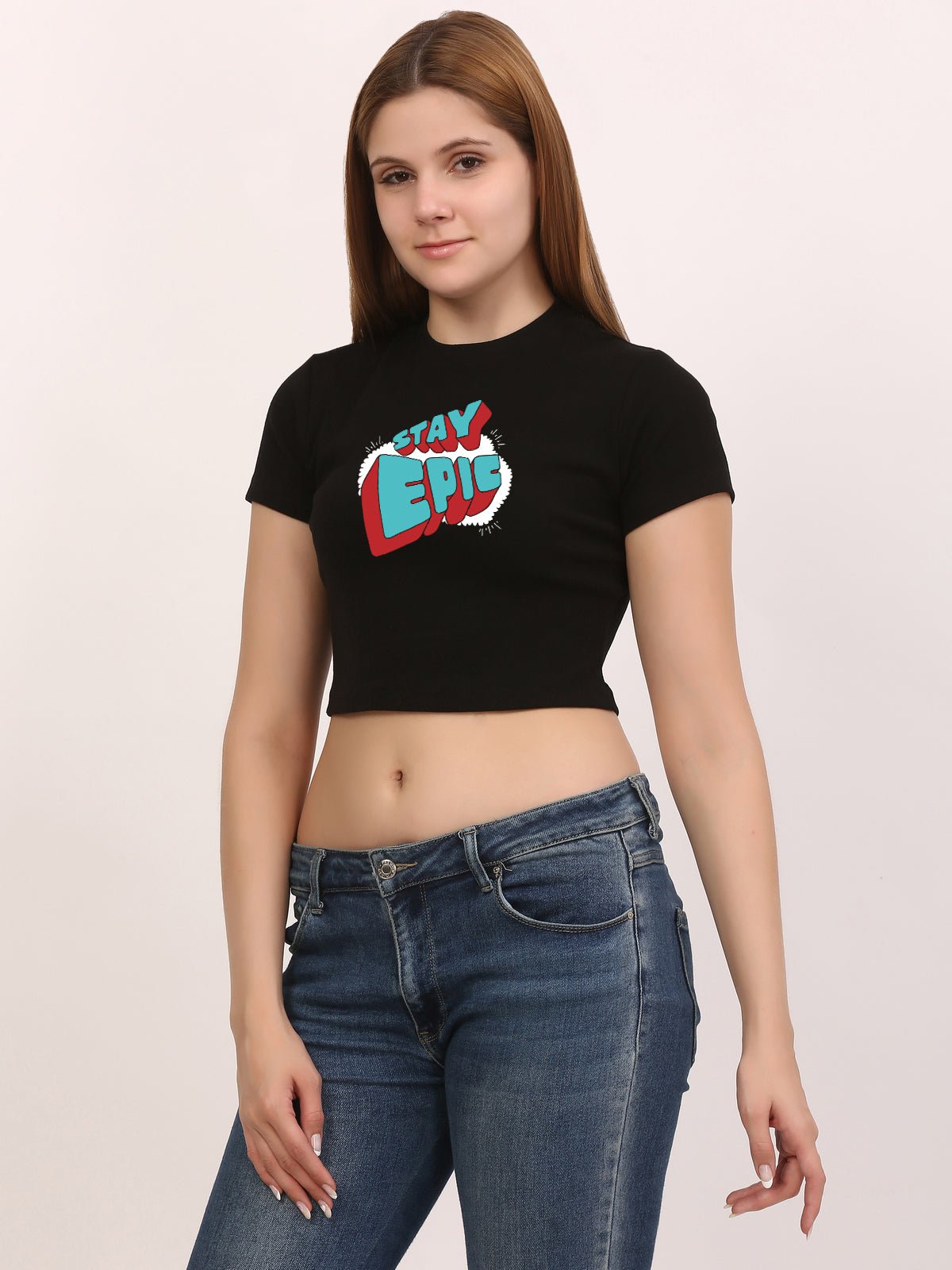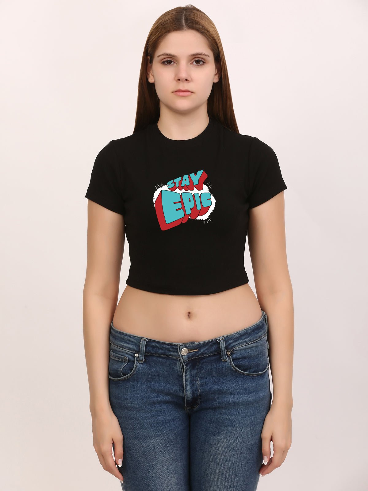Stay bold, stay epic. This baby tee features a vibrant "Stay Epic" design on the front, perfect for girls who love to stand out. A comfy and confident vibe for everyday slay.